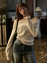 بلوز مكشوف الأكتاف خريفي وشتائي بلون اوف وايت