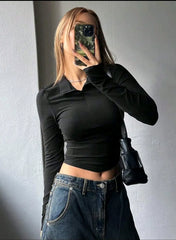 قماش مطاطي رياضي أسود قصير بأكمام طويلة وسحاب صغير خامة ممتازة
