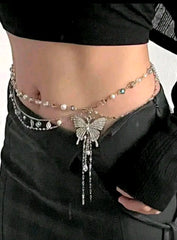 1pc European&American Minimalist Butterfly Tassel Multi-Layer Beaded Waist Chain, Unique Elegant Fashion