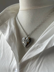 قلادة صور فضية على شكل قلب - ثلاث نقوش