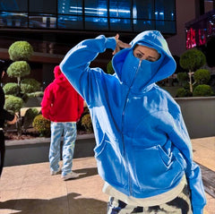 تألق بإطلالة جريئة وعصرية مع هذا الهودي الأسود المميز! تصميم مبتكر من النينجا بسحاب مزدوج يمتد حتى غطاء الوجه، يمنحك التغطية وفقاً لأسلوبك. مصنوع من قماش ثخين عالي الجودة يوفر الدفء والراحة، مع قصة واسعة وجيوب عملية لإطلالة أنيقة ومريحة في آنٍ واحد. مثالي لعشاق الموضة العصرية ولمسة من الغموض الفريد. ارتديه مع بنطال واسع أو جينز لمظهر ملفت لا يُقاوم.